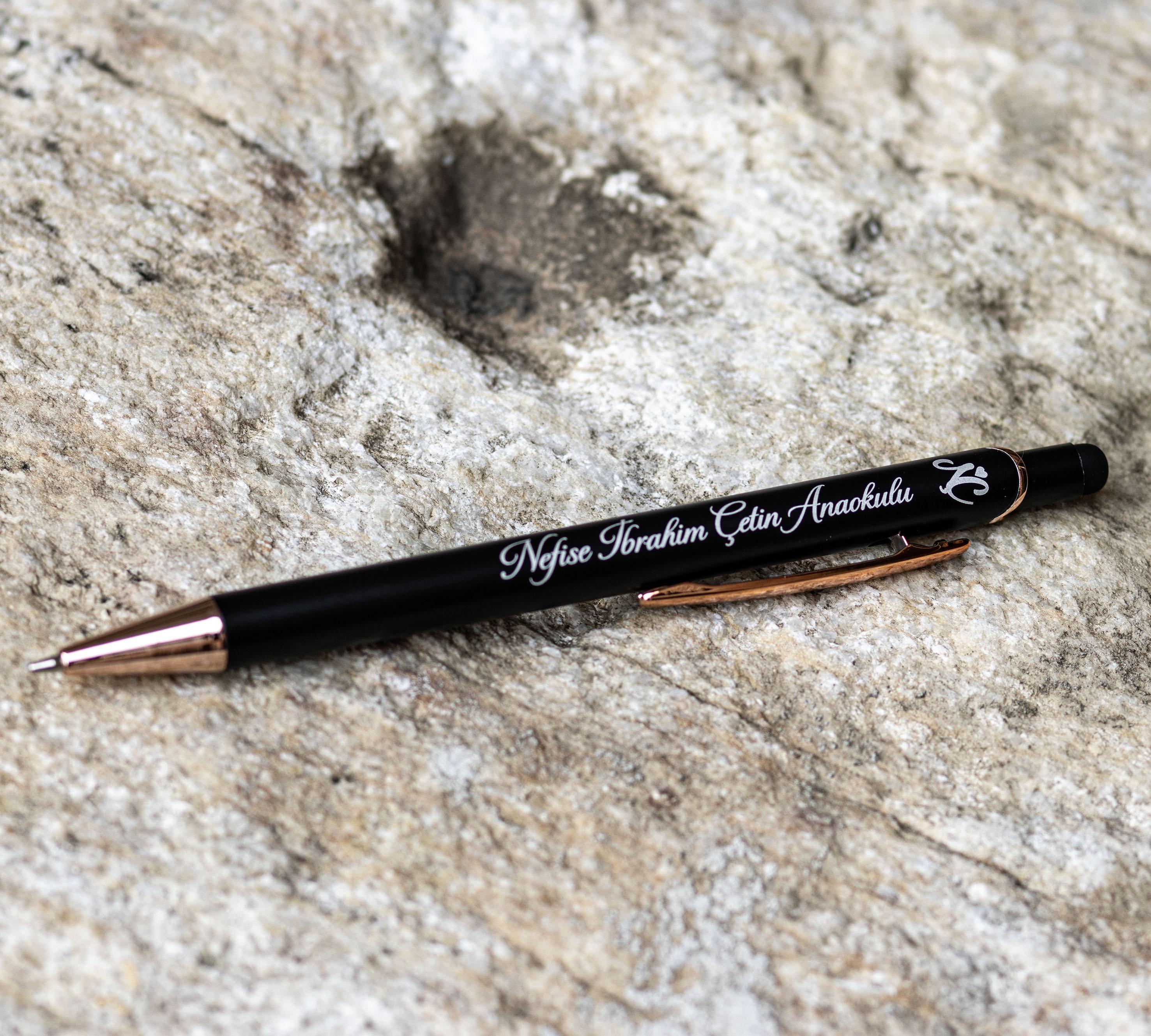 Üzerinde isim veya özel bir mesaj bulunan kalem: