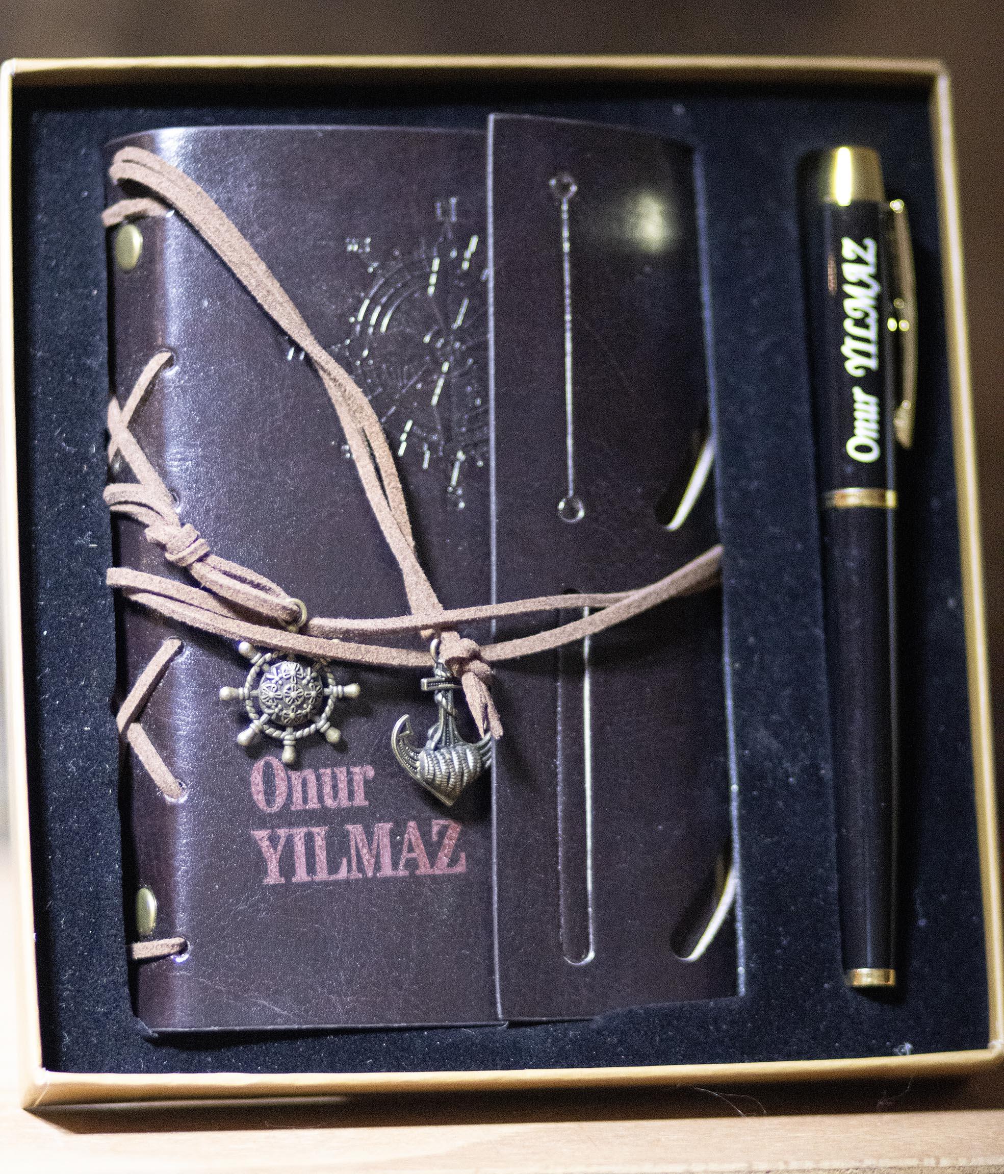 Bu özel defter & kalem setini tamamen size özel olarak hazırlıyoruz. Defter kapağına ve kaleme isim, tarih, logo ya da dilediğiniz kısa bir mesaj ekleyebiliriz. Sipariş sırasında kişiselleştirme alanına yazmak istediğiniz metni eklemeniz yeterlidir. Tasarım onayından sonra ürün özel kutusunda özenle hazırlanır ve kargoya verilir.