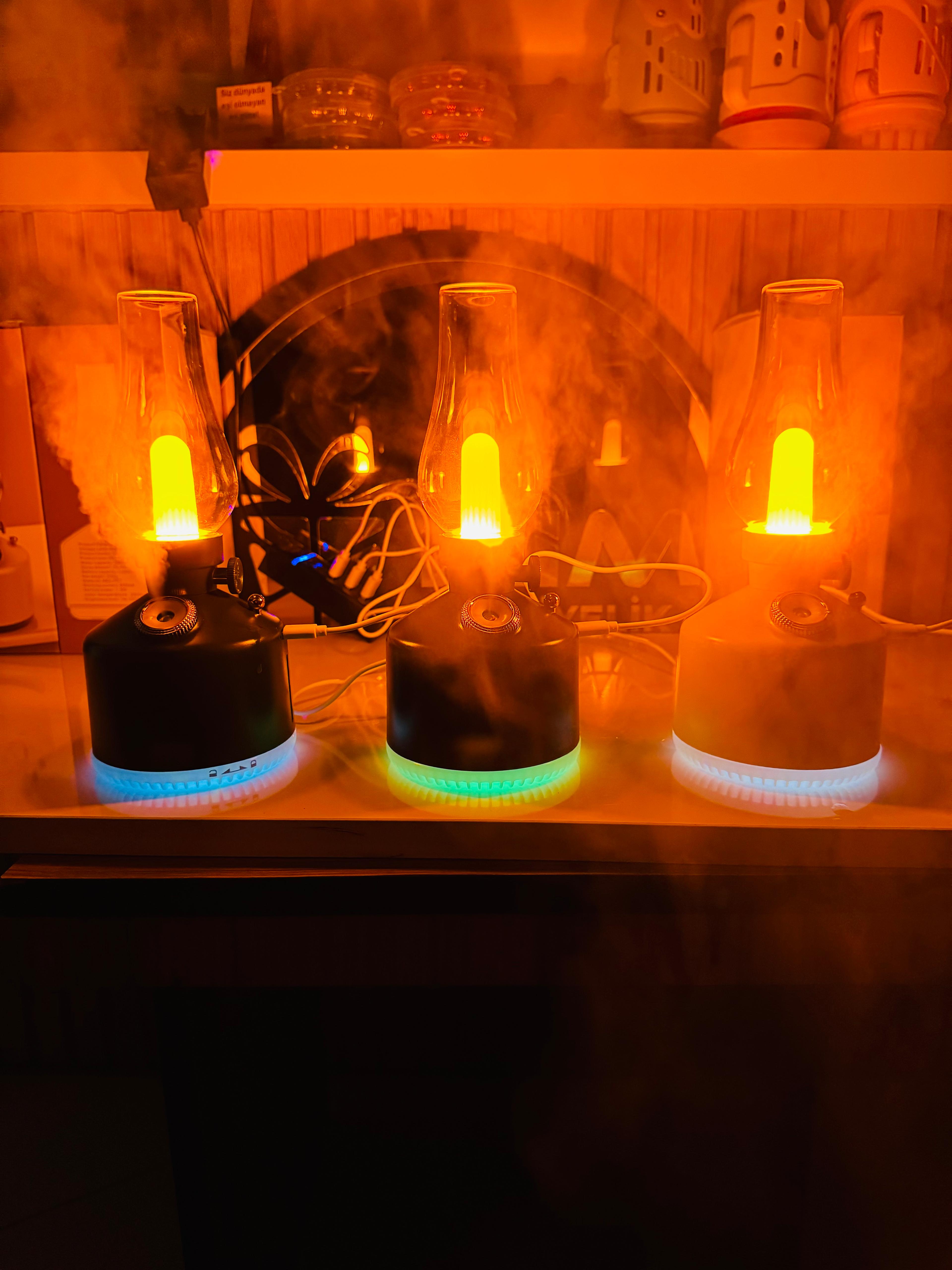 Gaz lambası formu ile dekoratif bir tamamlayıcıdır.