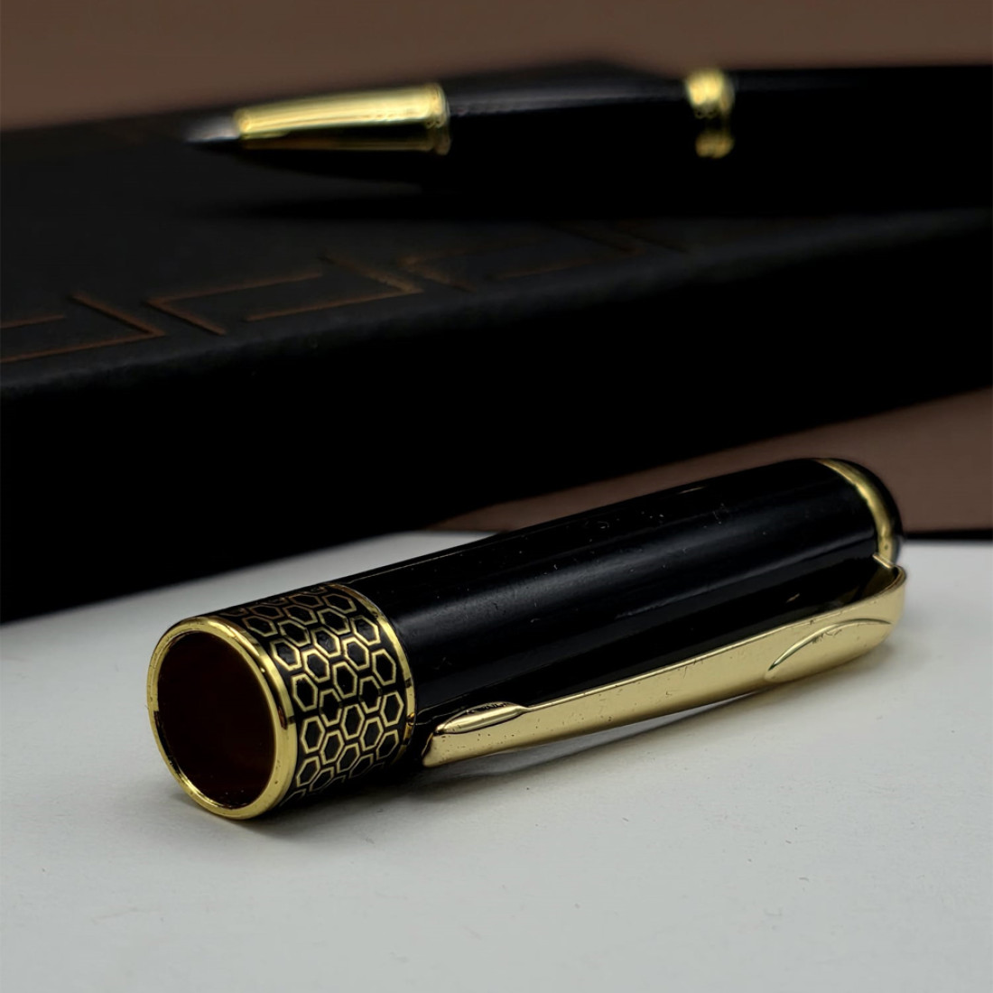 - Gold İşlemeler: Siyah yüzey üzerindeki zarif gold işlemeler, kaleme zarif bir görünüm kazandırmaktadır. Bu detay, kalemi kişisel bir dokunuşla göz alıcı hale getirir.